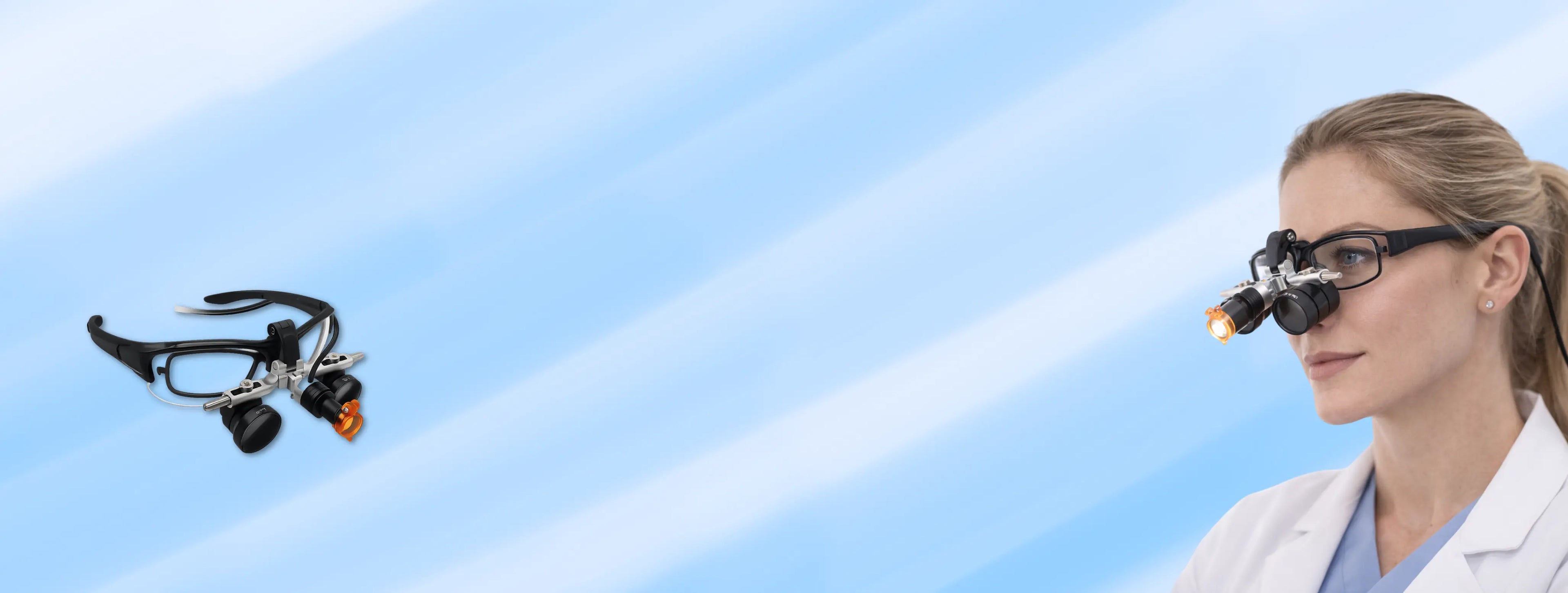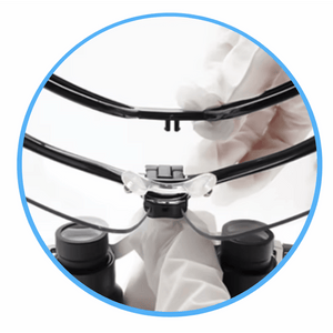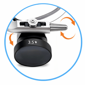 Dental loupe with 5W LED lighting and intensity of up to 40,000 lux. Ensures precise diagnoses and ergonomics in your office. Long-lasting battery.
